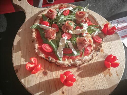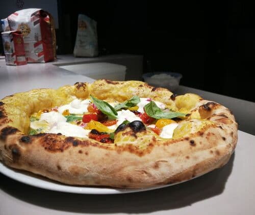 La nostra procedura prevede che l’impasto sia preparato con olio Extra Vergine di oliva, lievito madre (per una lievitazione che conferisce una particolare croccantezza alla base), sale iodato e acqua fredda; particolare attenzione deve essere prestata alla temperatura durante la lievitazione per ottenere il risultato “perfetto”.